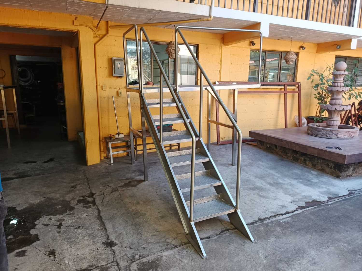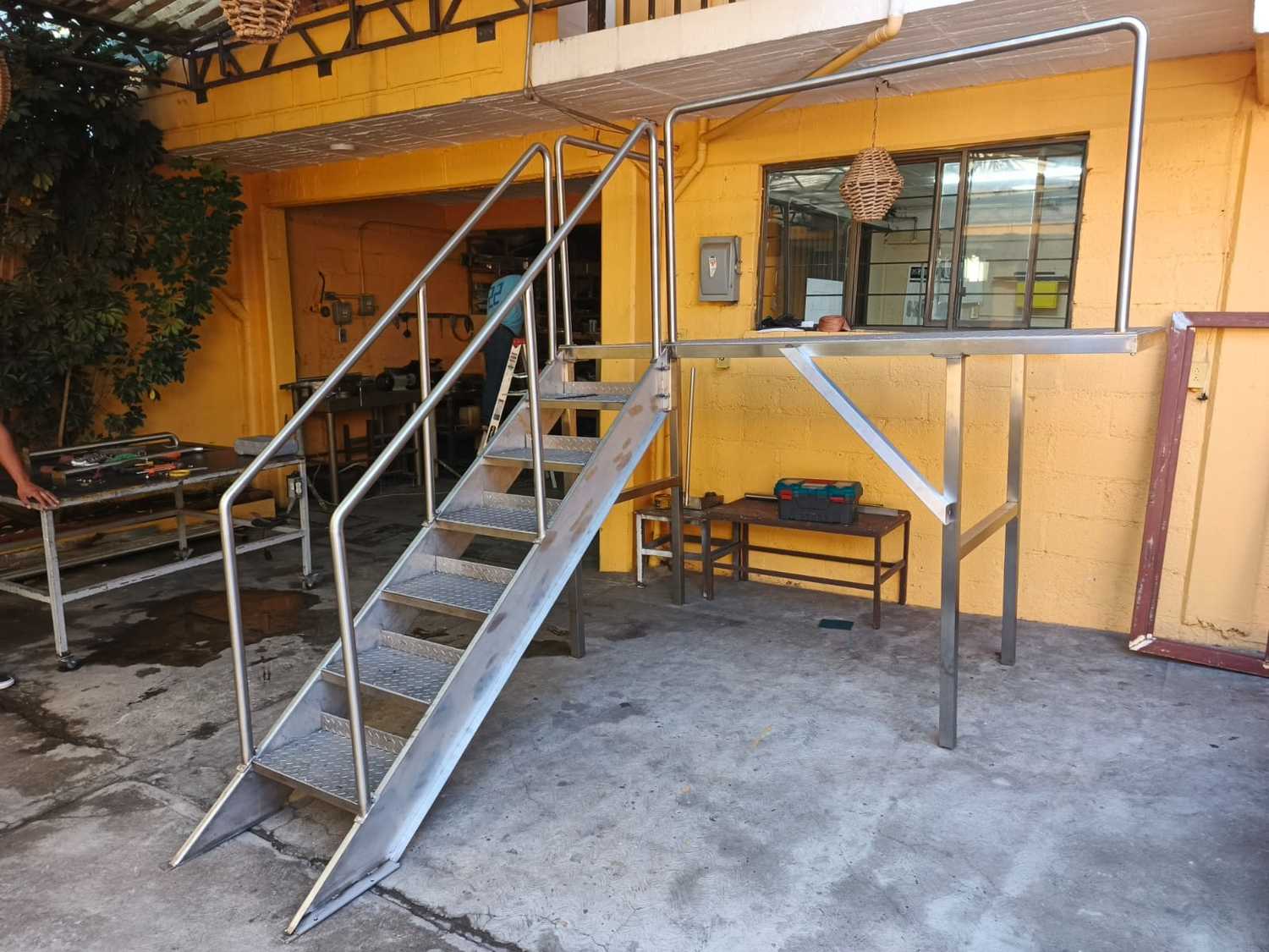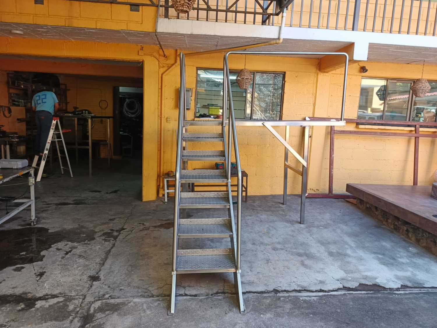 Instalación de tarja y escalera con plataforma
